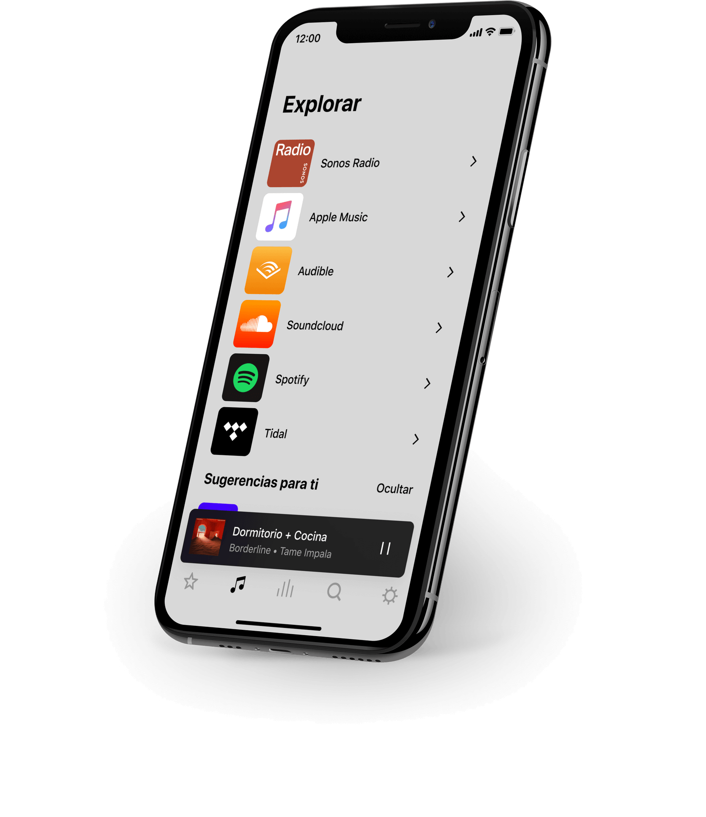 Controlá tu sistema fácilmente desde cualquier habitación. Explorá música, emisoras, podcasts y audiolibros, cambiá el volumen, agrupá altavoces para que suenen juntos, poné alarmas y mucho más.